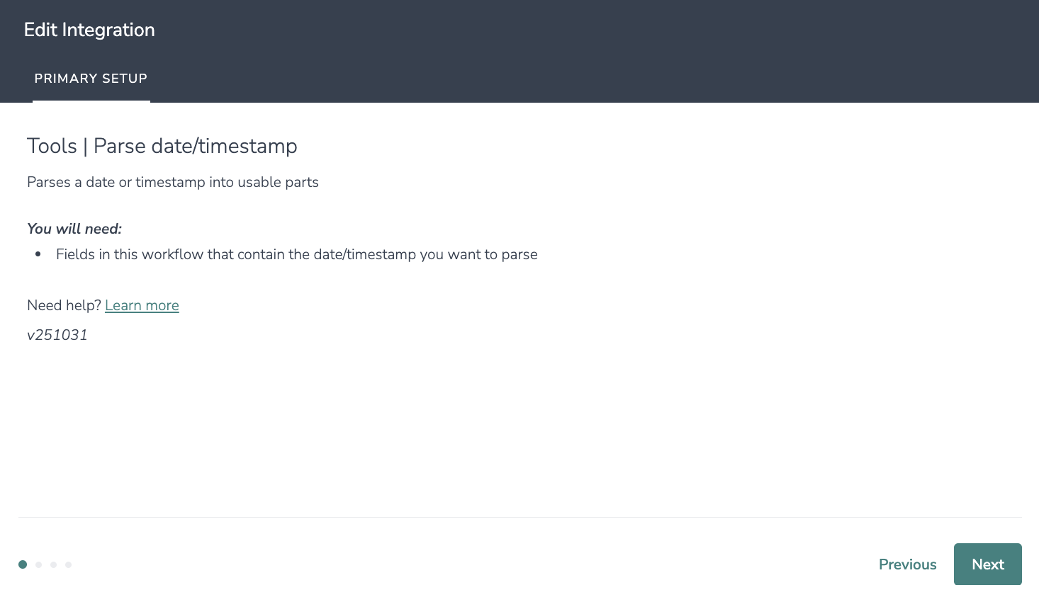 - Get details about a timestamp, so that you can use the parts of the timestamp in logic and when creating workflow messages.