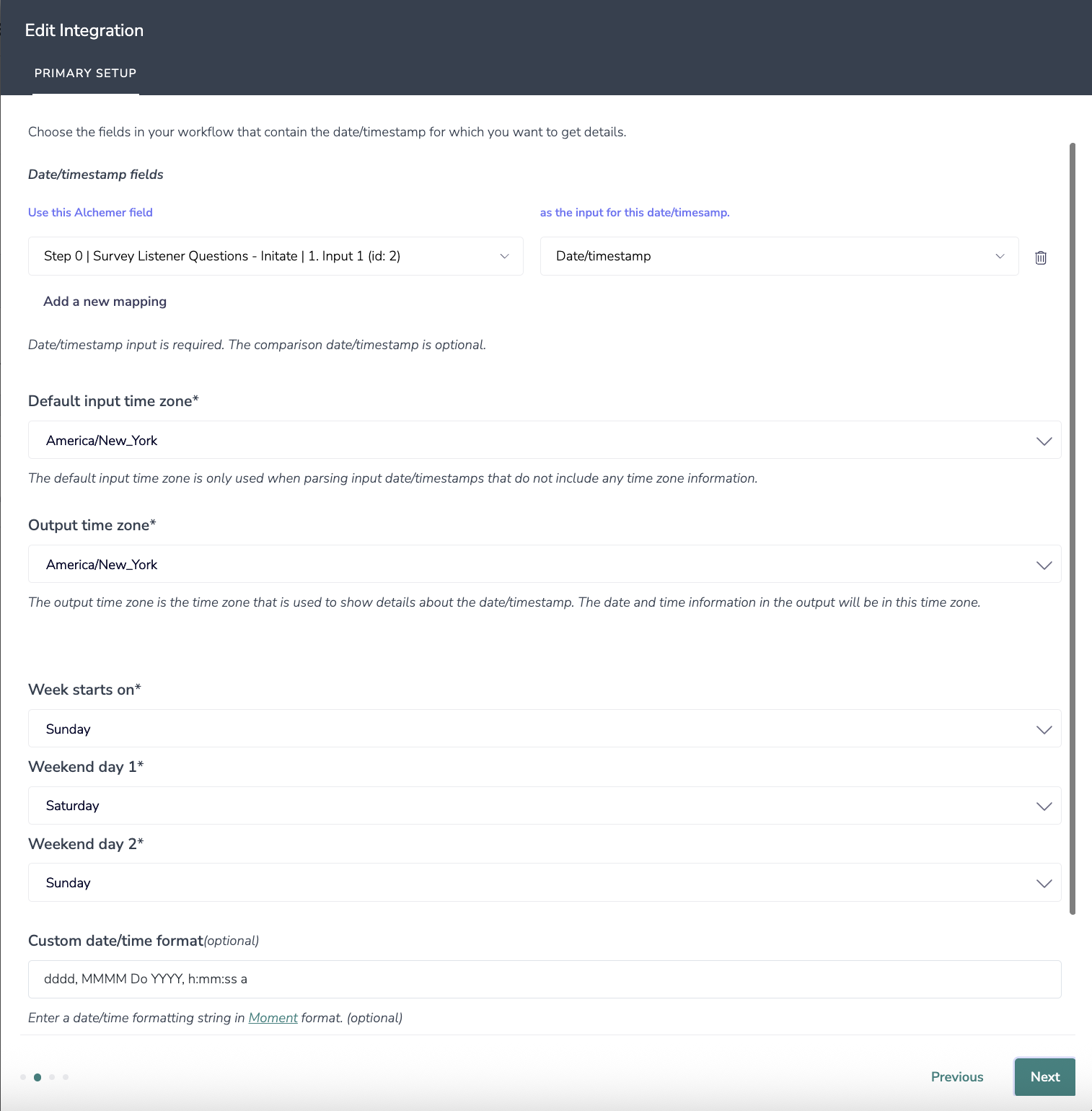 3. Choose the fields in your workflow that contain the date/timestamp for which you want to get details.
