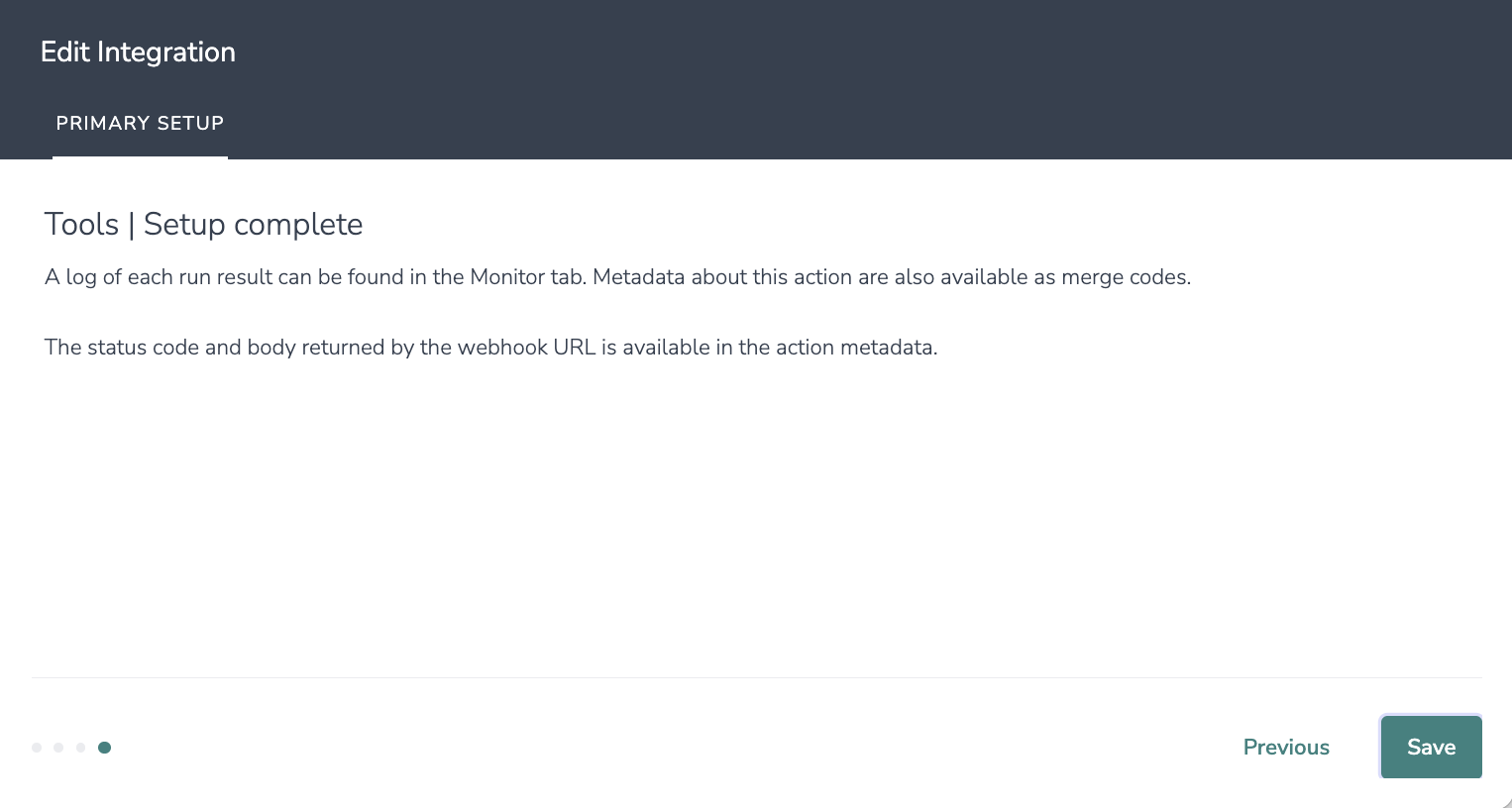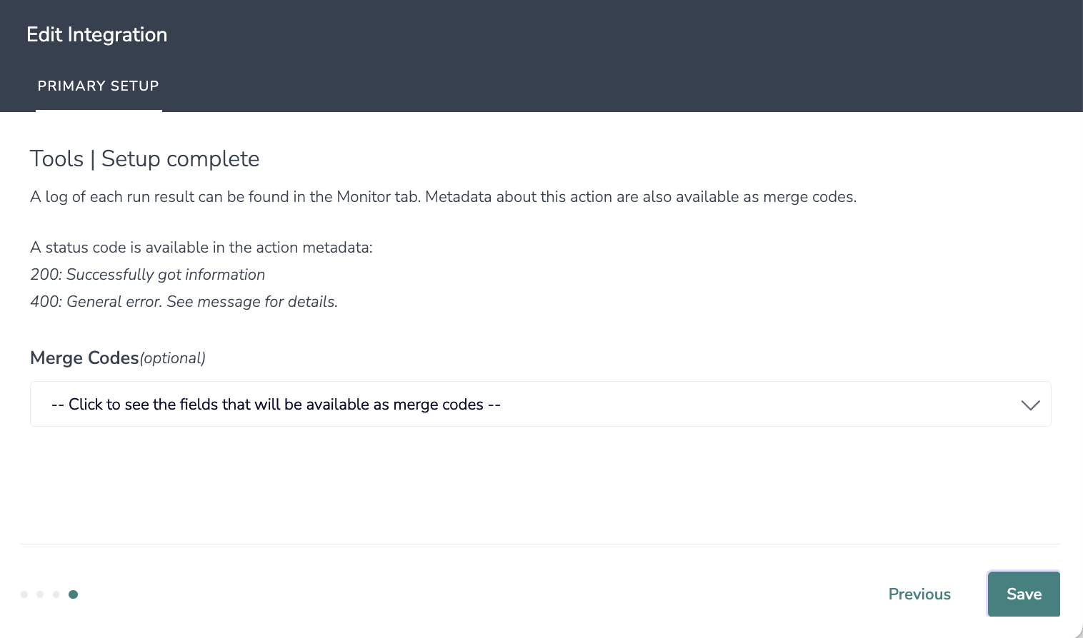 5. Click "Save" to complete setup. On this screen you can find a list merge codes now available for use in your workflow.