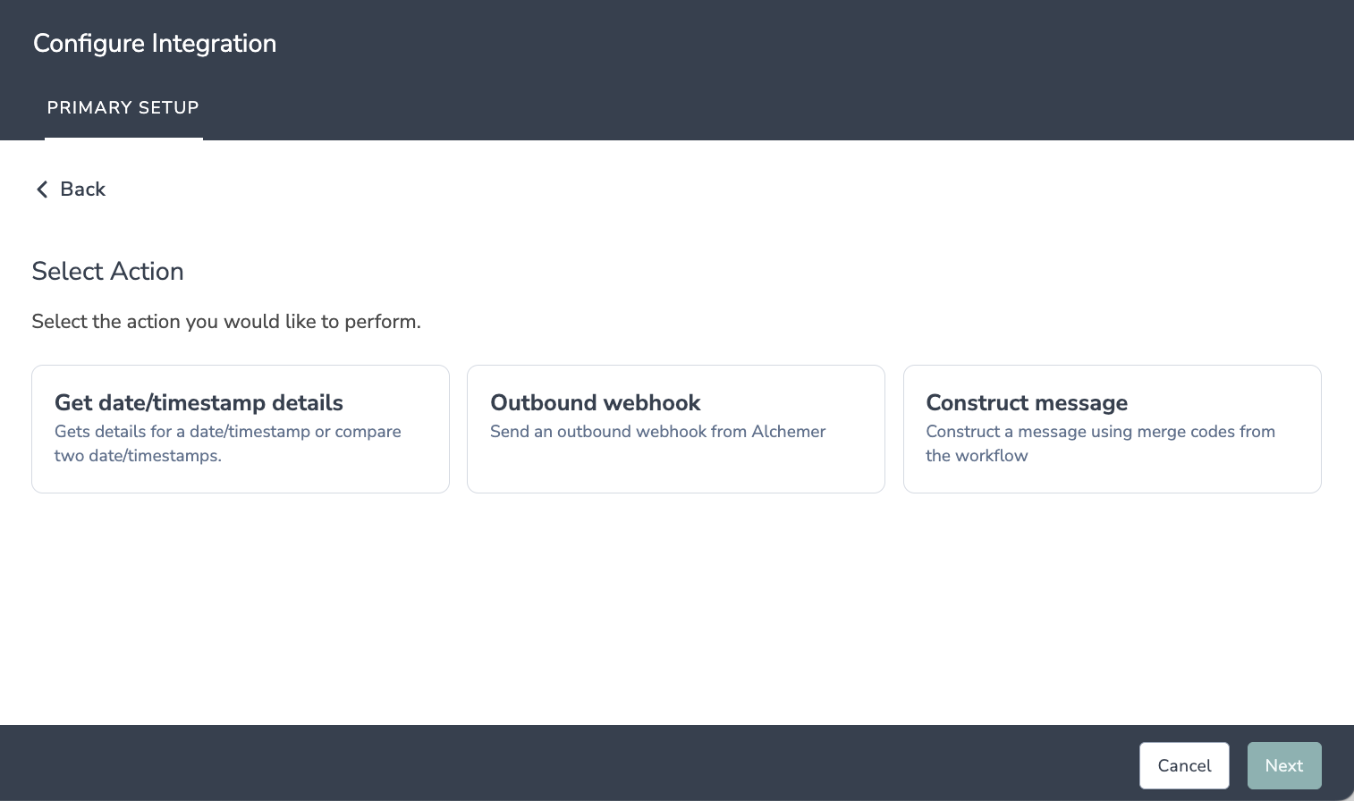 1. Select "Get data/timestamp details" and Click "Next" on the integration overview screen.