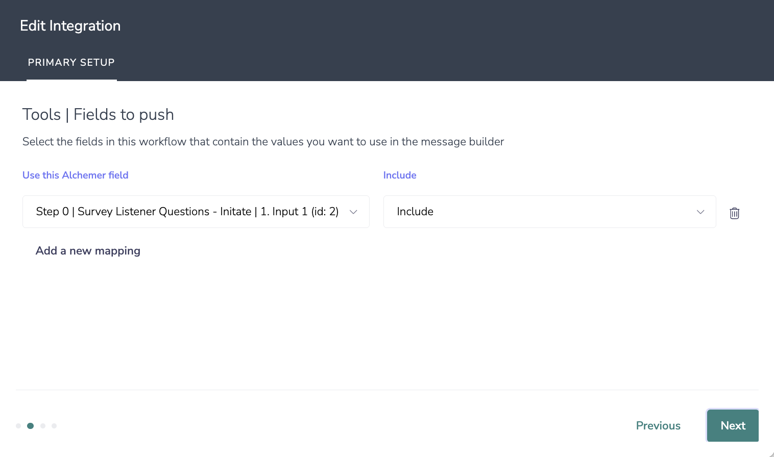1. Select the fields in this workflow that contain the values you want to use in the message builder.