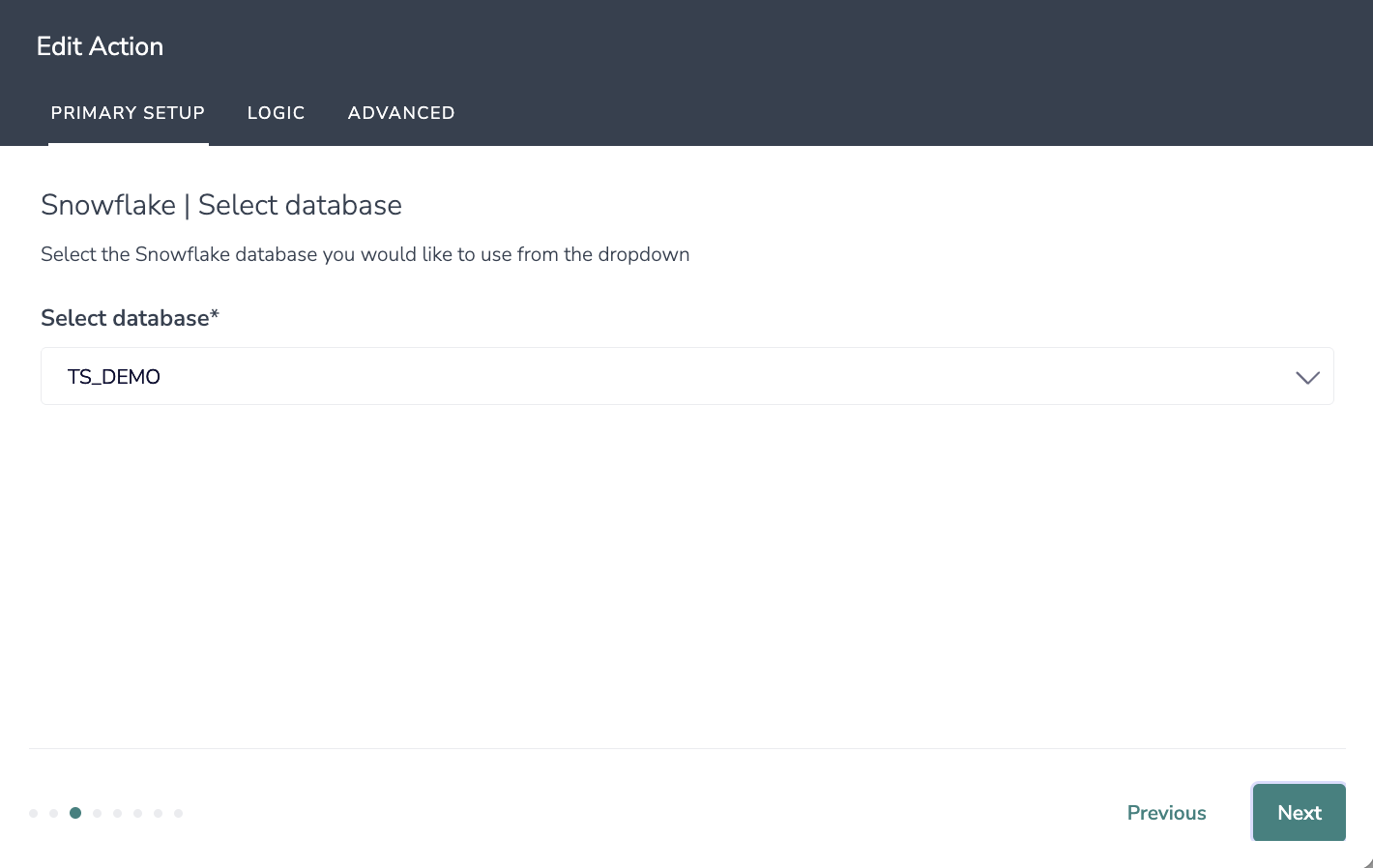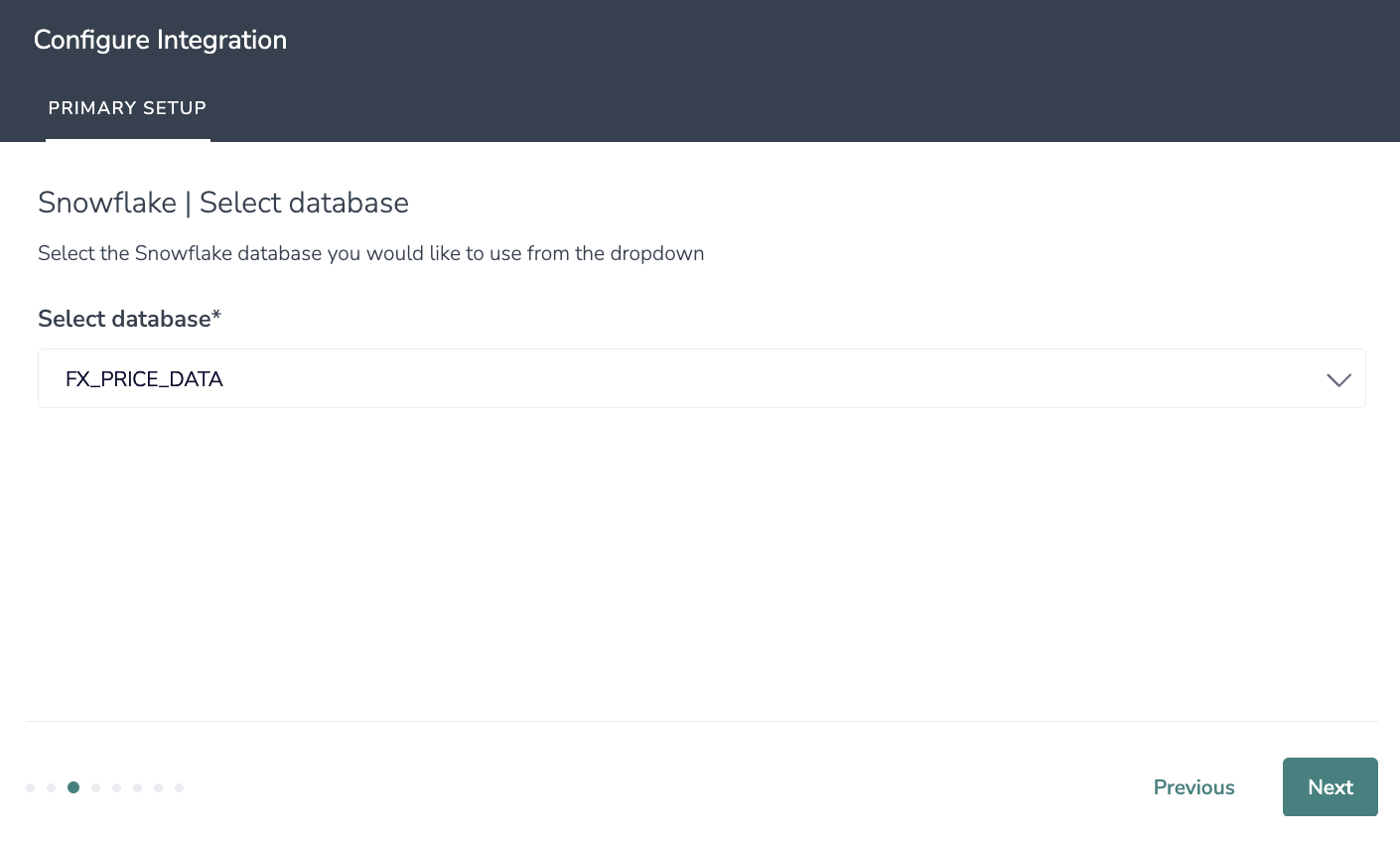 3. Select the Snowflake database you would like to use from the dropdown.