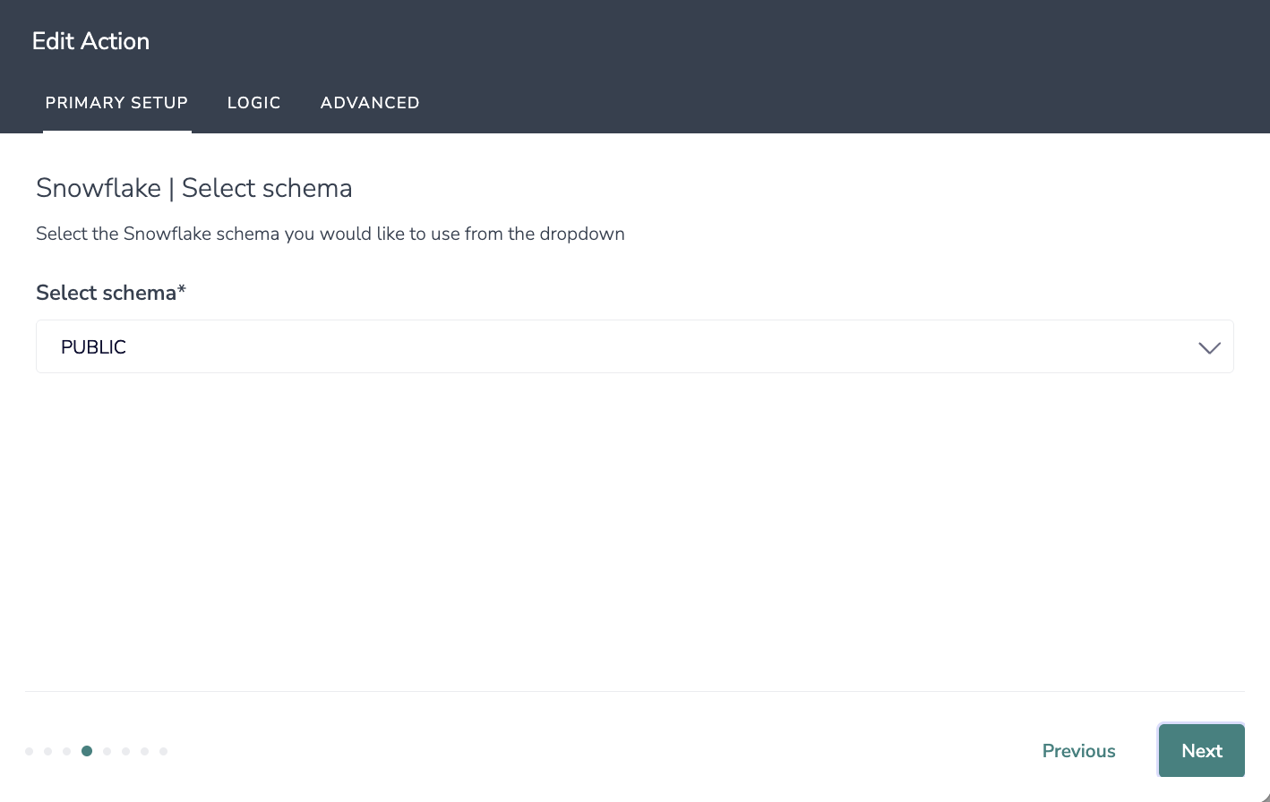 4. Select the Snowflake schema you would like to use from the dropdown.