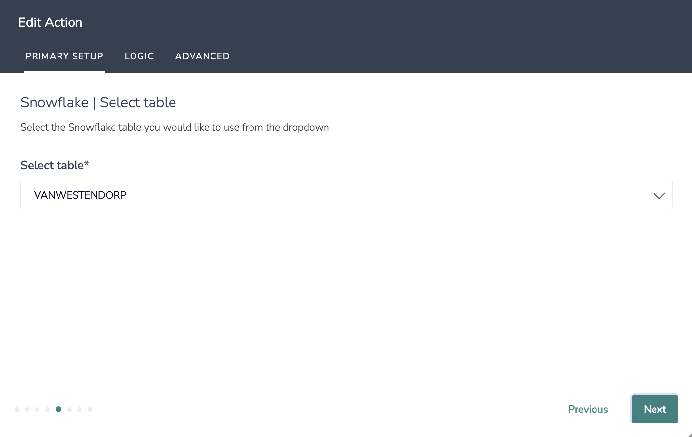 5. Select the Snowflake table you would like to use from the dropdown.