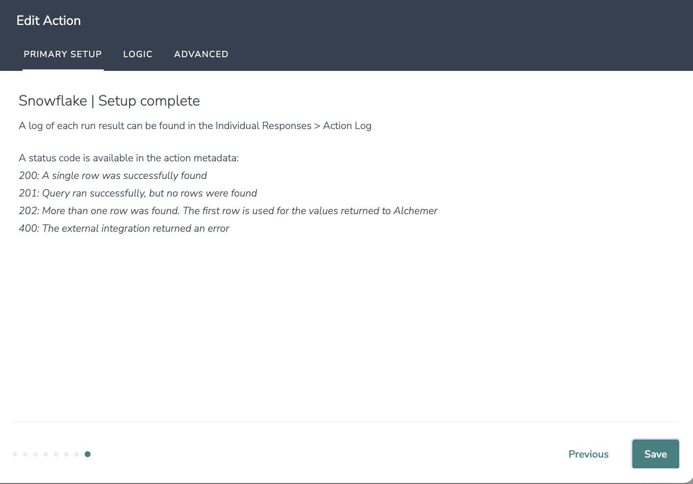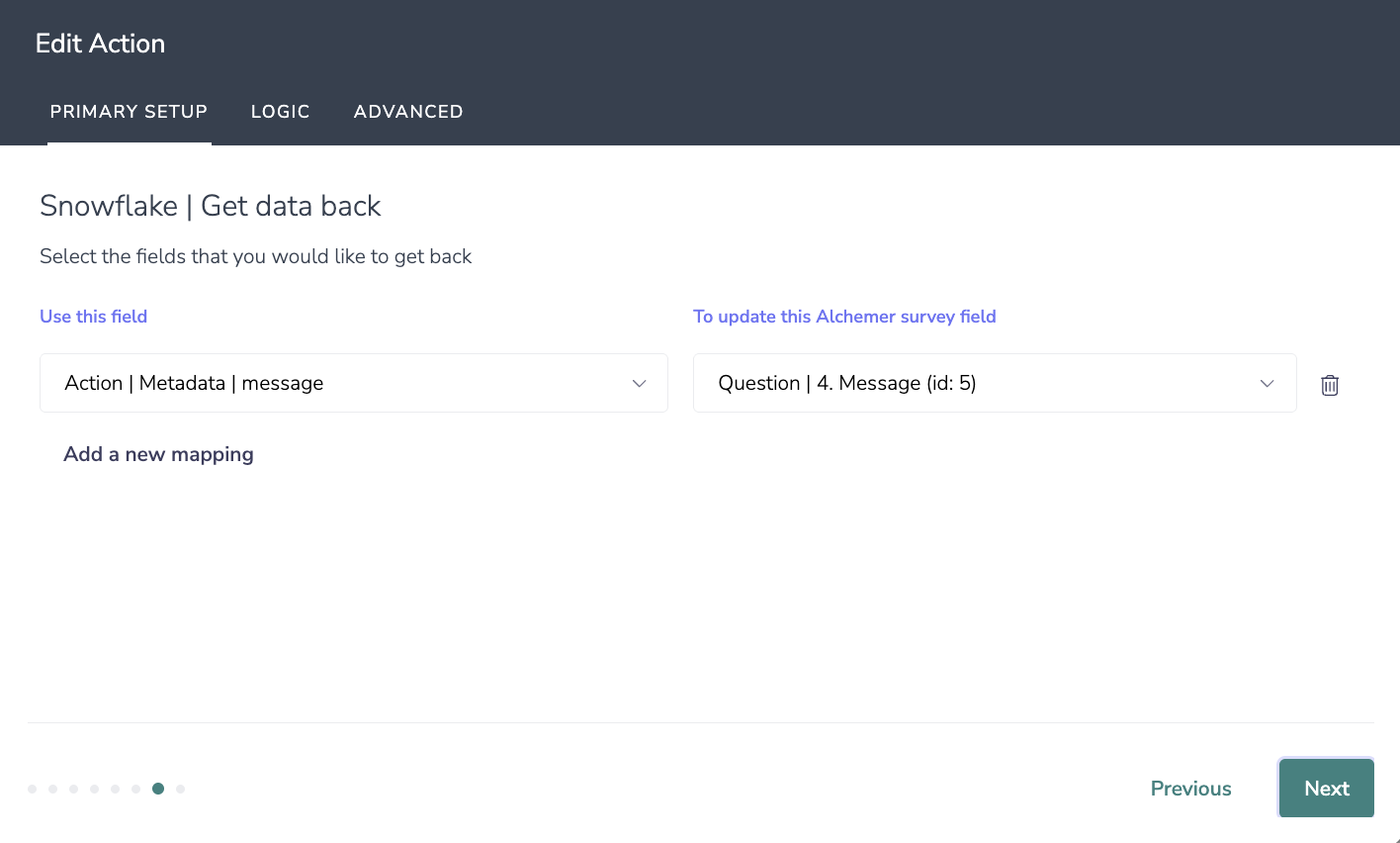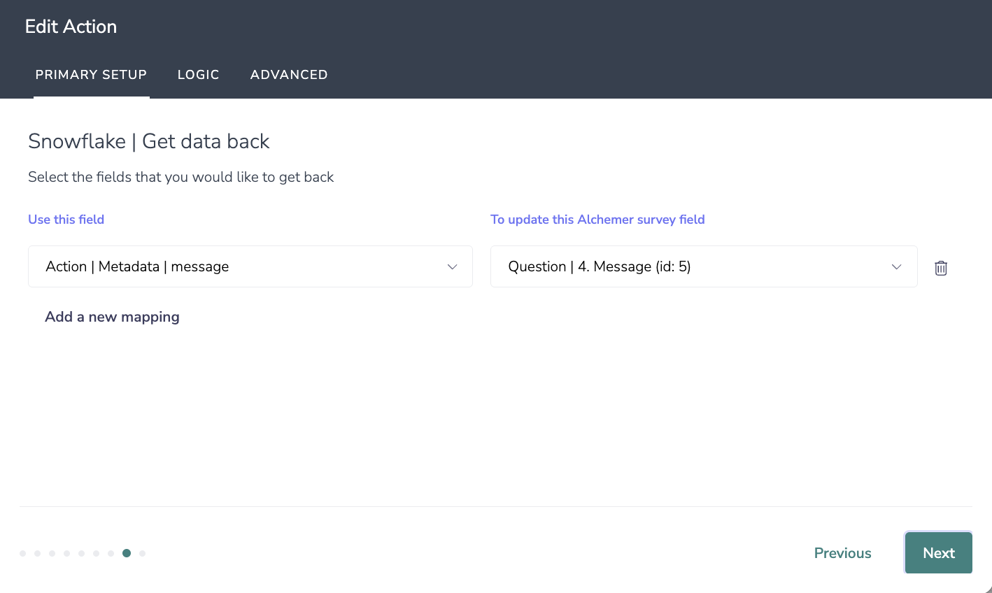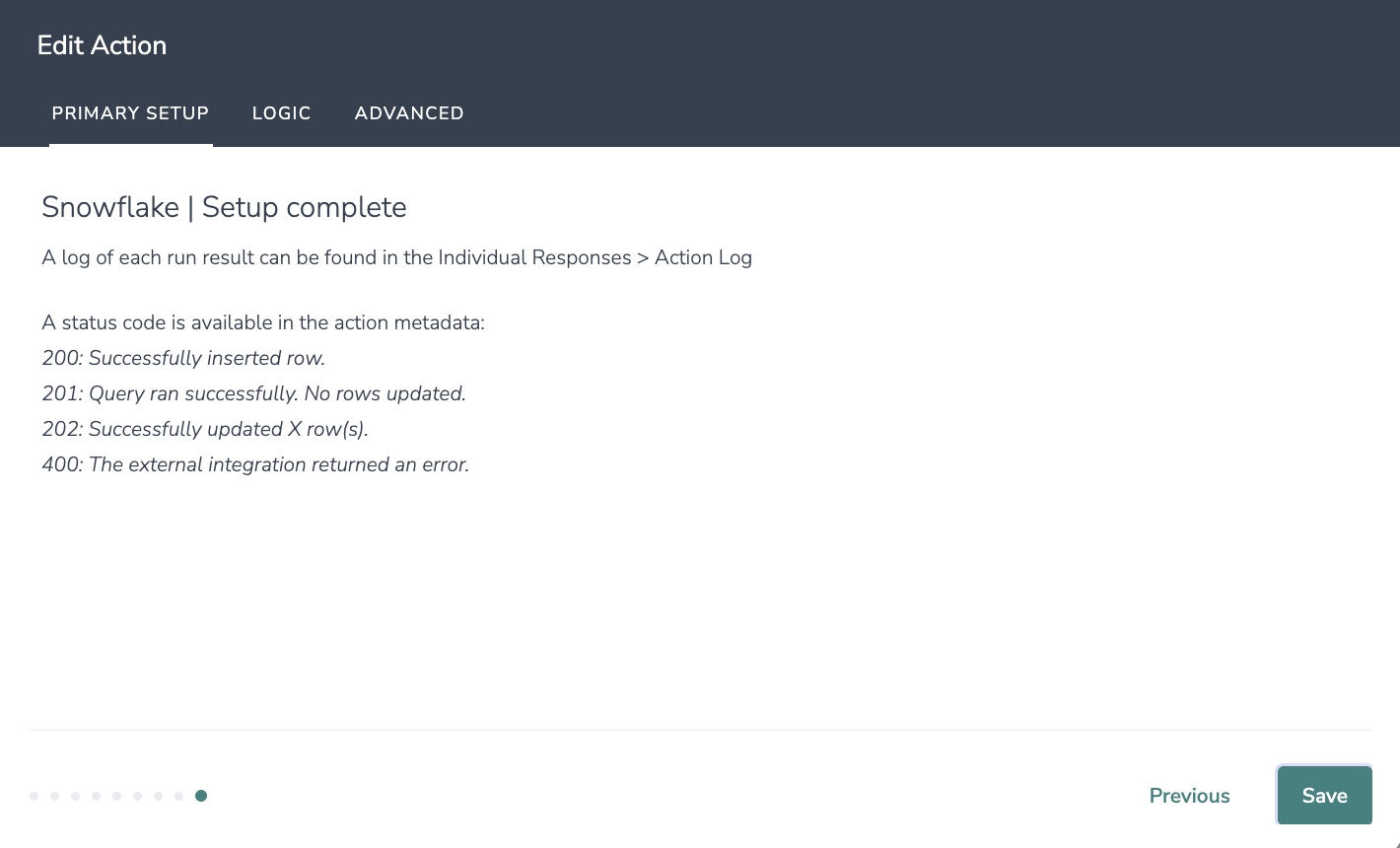 With Alchemer Survey, you can connect a Snowflake integration directly to a survey action. This allows you to:
