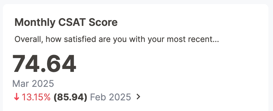 Previously, time-series KPI charts had limited options when comparing to past periods. A weekly KPI could be compared against the previous week, the previous month’s same week, the previous quarter’s same week, or the previous year’s same week. Now, you can set a custom point in data against which Alchemer Dashboard compares the most recent data point, any number of weeks ago.