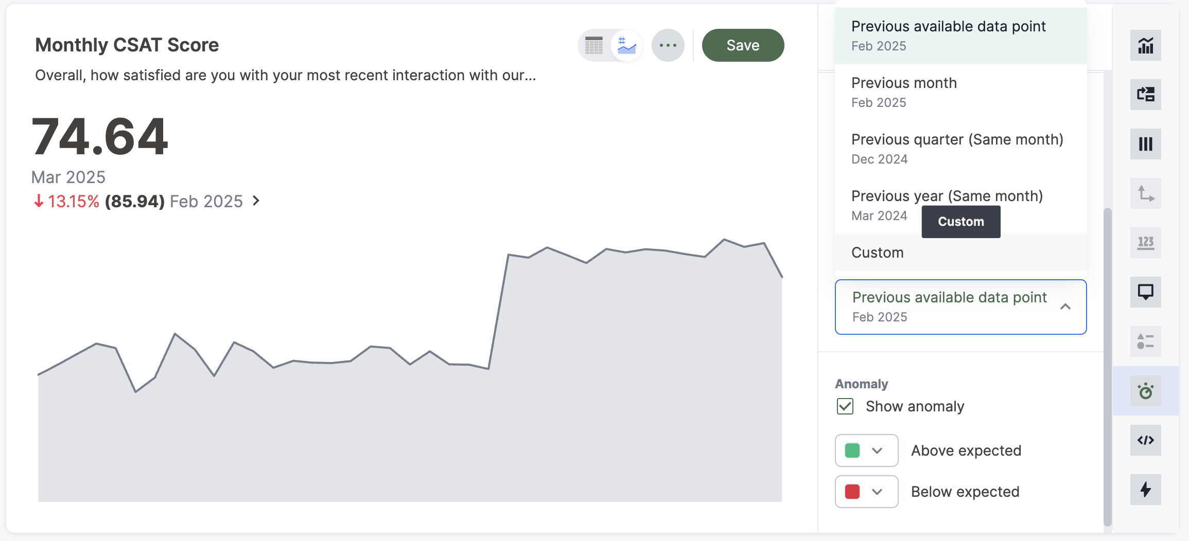 To set your KPI’s custom comparison point, follow these steps: