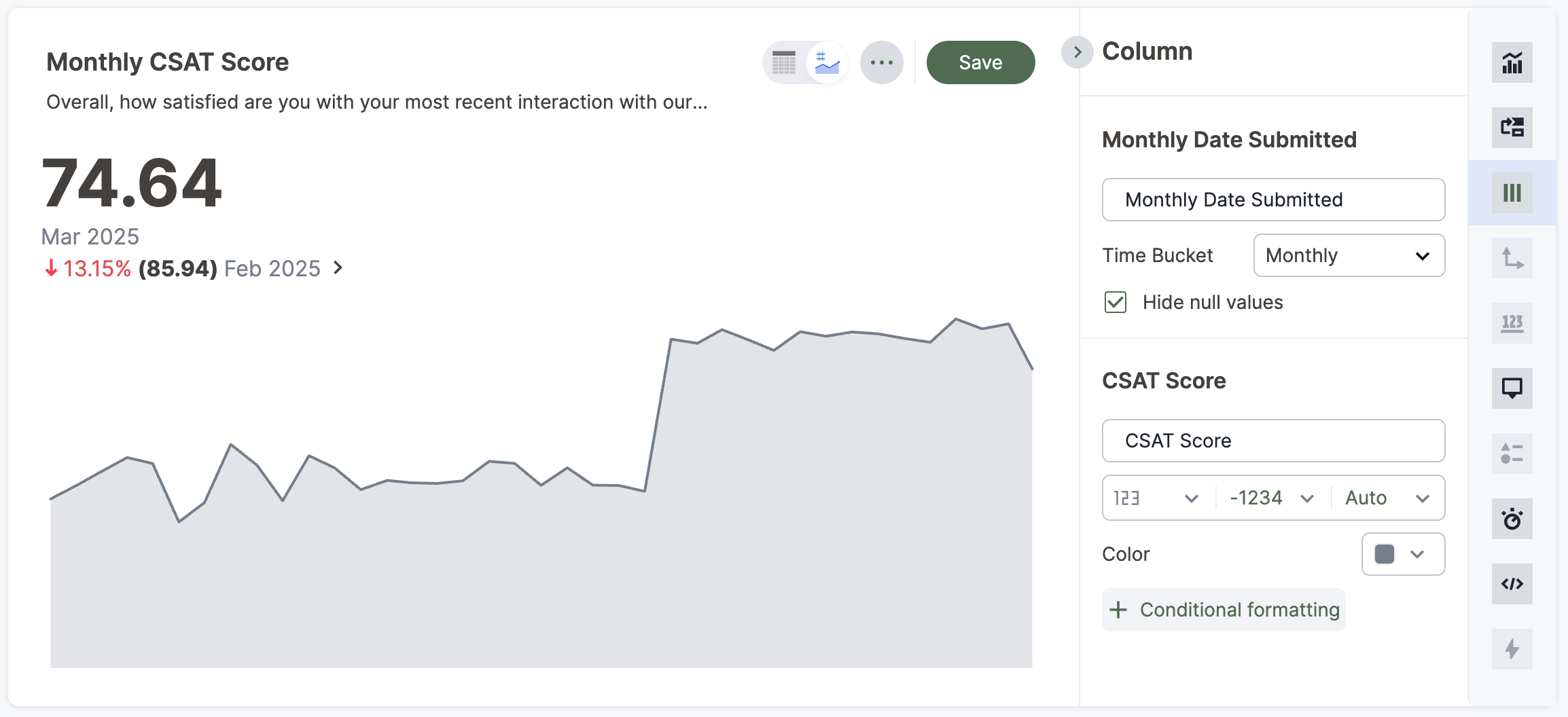 2. Select the column tile under the Visualized section, for example, "CSAT Score".