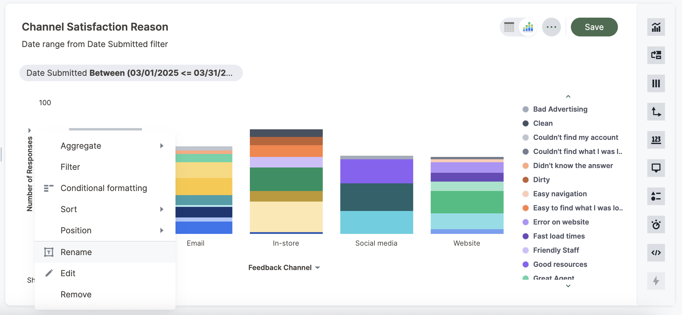 1. While viewing your Chart as a chart, open the dropdown menu icon next to the axis label you want to rename.