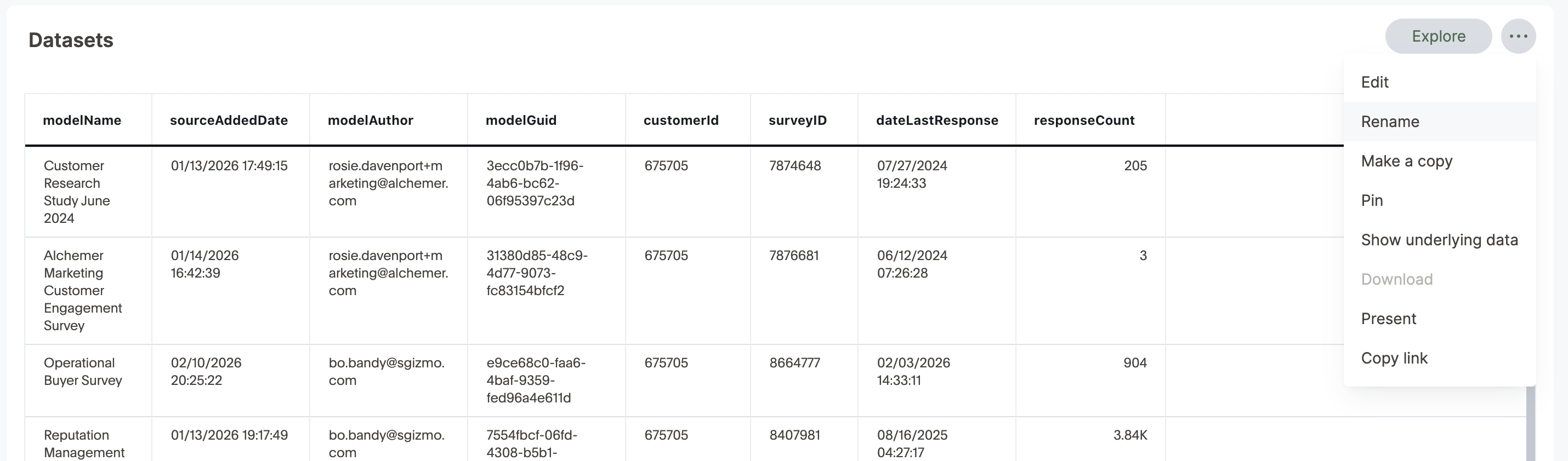 1. While viewing your Chart as a table, open the more options menu icon that appears when you hover over a column name.