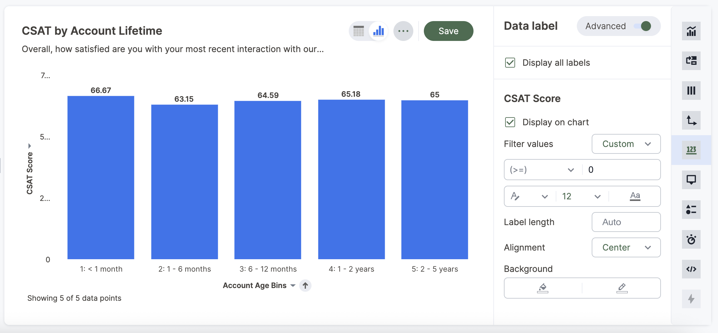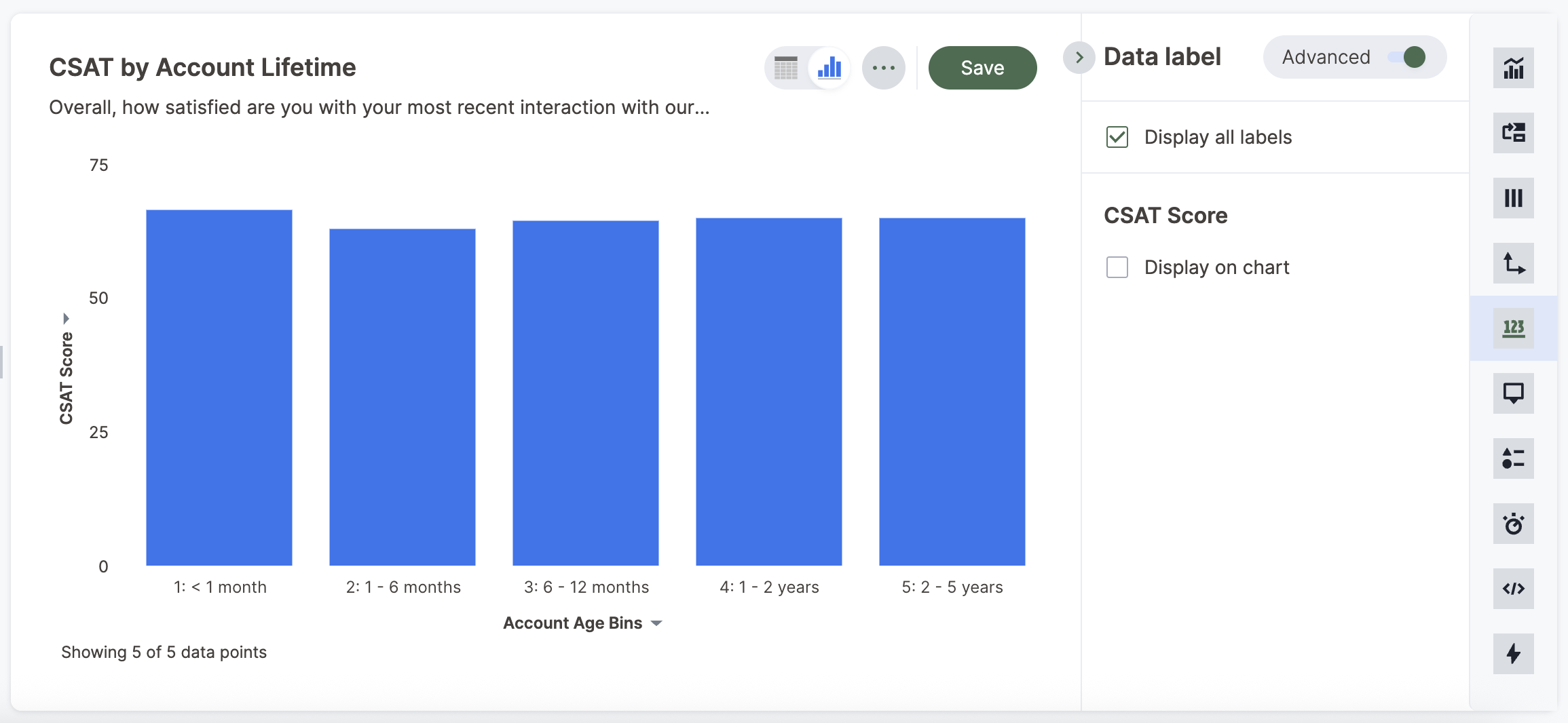 1. While viewing your search or Chart as a chart, select the Data Label icon in the chart builder menu.